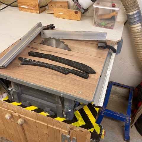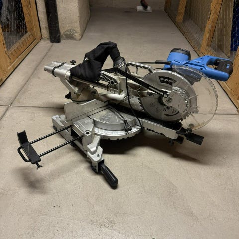 Två vinkelanslag till kap- eller bordssåg