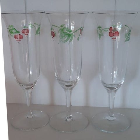 Fyra stycken vinglas, etikettmärkta KostaBoda, samt UHV på två av dem, höjd ca 21 cm, i nyskick.