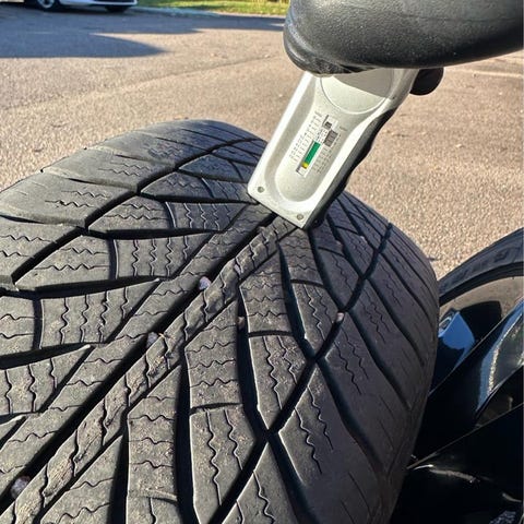 Mönster djup 5mm. Har suttit på en BMW 116i, 2020.