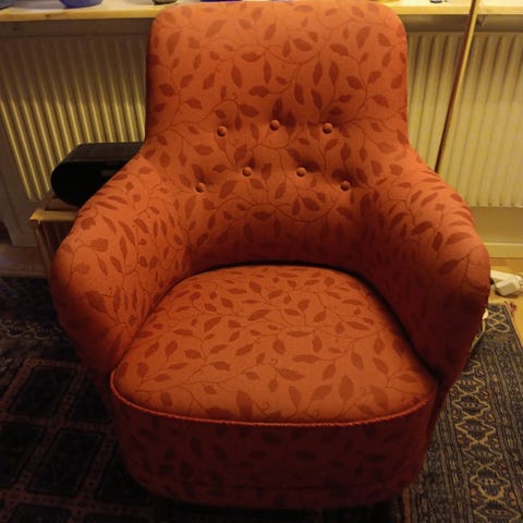 En klassisk fåtölj formgiven av Carl Malmsten, modell "Häggbom".