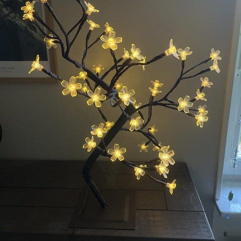 Superfint annorlunda ljusträd i vit metall med transformator. Foten har en mjuk sammetsdyna under sid. Bollarna ger ett varmt sken och det medföljer 3 st extra. Höjd 50 cm och bred som bredast 36 cm. Sladdlängd 4 m. Endast för inomhusbruk. Ligger i sin kartong. Kan hämtas på Fridhemsgatan vid Fridhemsplan.