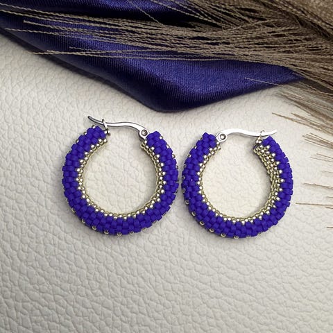 Unna dig själv eller en närstående en underbar present – handgjorda örhängen gjorda av högkvalitativa pärlor. Kombinationen av silverpärlor och matta mörkblå pärlor gör dessa örhängen mycket imponerande och passar alla stilar, från vardag till kväll.