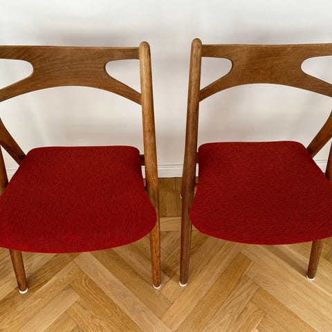 Två stycken legendariska W2 stolar designad av Hans J wegne