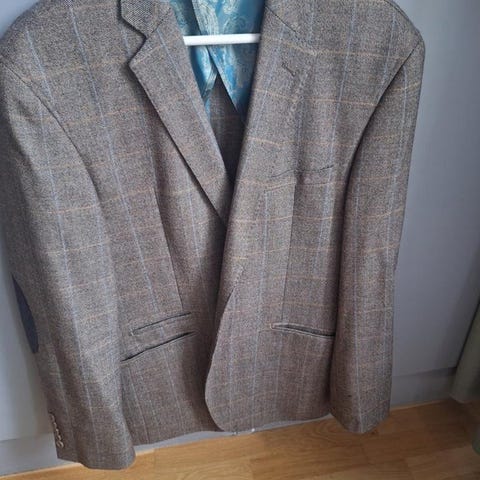 Underbart Paisleyfoder. Himmelsblå läderfösztärkta armbågar.