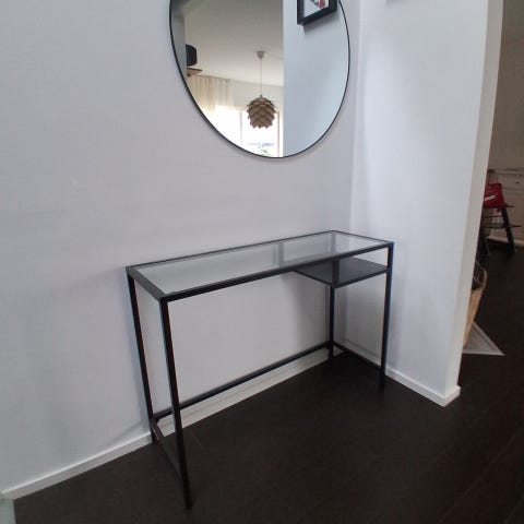 Svart skrivbord/sideboard från IKEA .