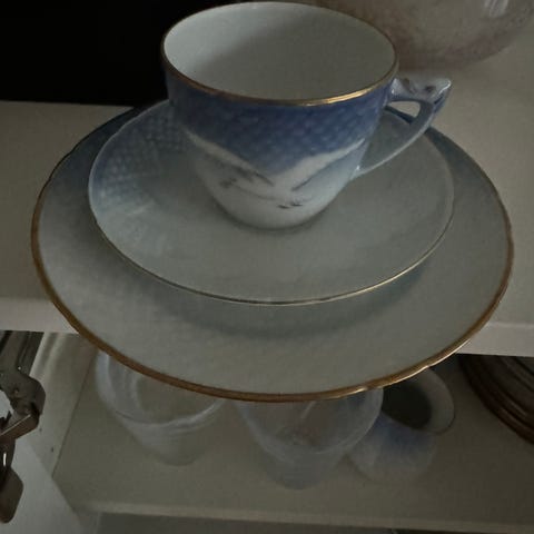 Kaffekanna med tillhörande mjölk kanna, sockerskål på fat i Bing o Gröndals serie elegance.