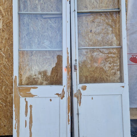 Antik fransk pardörr med spröjs i ek