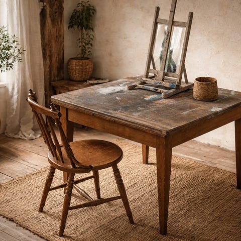 Stadigt äldre bord i trä. Passar fint som avlastningsbord, i kök, uterum eller växthus.