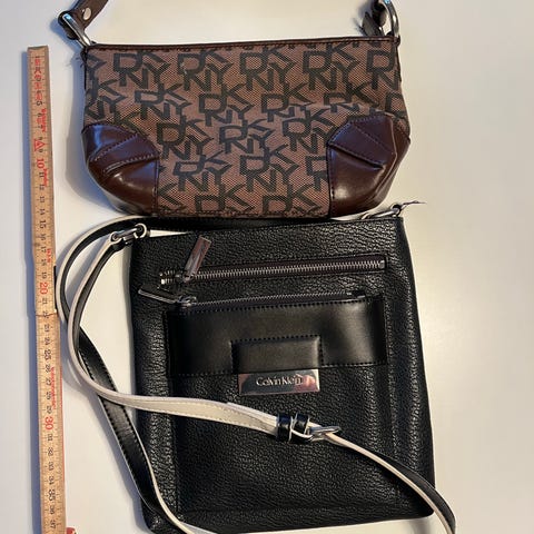 En super fin liten kuvert väska från Calvin Klein. Den är svart och i äkta skinn. B: 18 cm och H: 11 cm. Kan användas runt handleden eller fästa remmen på dragkedjan som en liten handväska eller som kuvert väska. Passar på vilken fest som helst. Otroligt fint skick!