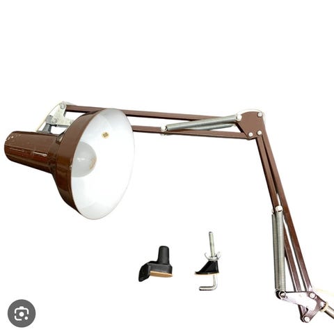 Snygg skrivbordslampa i mörk brun och gul/ beige. Helt ny, oanvänd