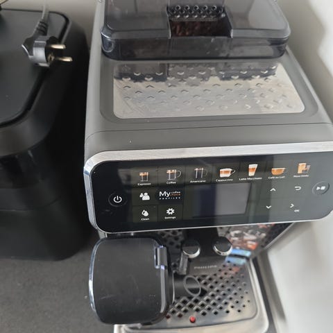 Helautomatisk espressomaskin med inbyggd mjölkskummare.