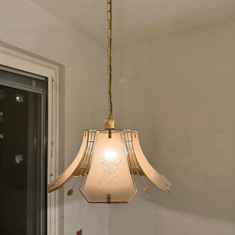 Stilren taklampa i grått och vitt med retro känsla. Passar perfekt i kök, hall eller vardagsrum.