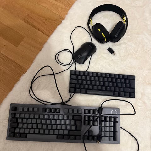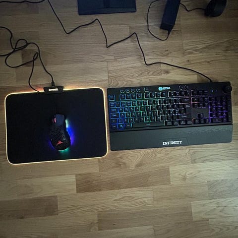 Säljer ett gaming set som inkluderar tangentbord, mus och headset. Perfekt för dig som vill uppgradera din spelupplevelse. Lyser i olika färger (alla tre).