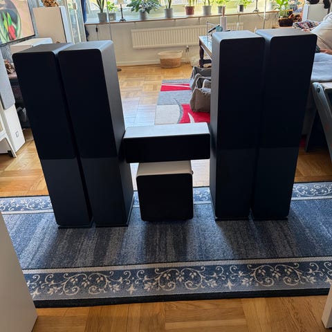 Säljer mitt surround paket som ej får plats i mitt nya vardagsrum. Ljudet har varit fantastiskt knivskarpt. Sladdar till högtalare medföljer.