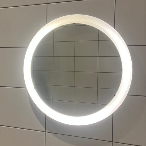 50cm bred, 60cm hög. Belyst av 10st halogenlampor, 10w styck.