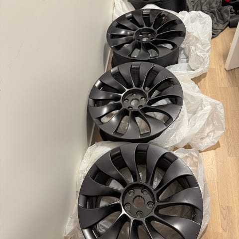 Säljer ett set med 4 st original Tesla Uberturbine fälgar 21 tum, samma modell som sitter på Tesla Model Y Performance.