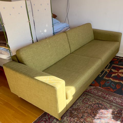 Bäddmadrassen skulle behöva bytas om man tänker ha den som extrasäng. Vi har mest haft den som kuriosastol.
