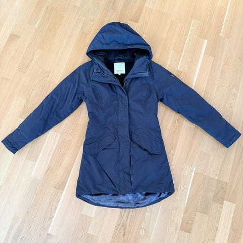 Fin och älskad jacka i strl 38/M. Mörkblå. Innerficka. Lite skrynklig på bilden då den legat nerpackad över sommaren, men slät annars. Tecken på användning på insidan, lite nött där (foto).