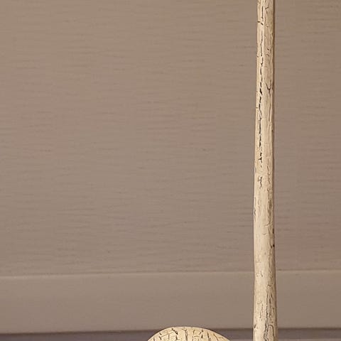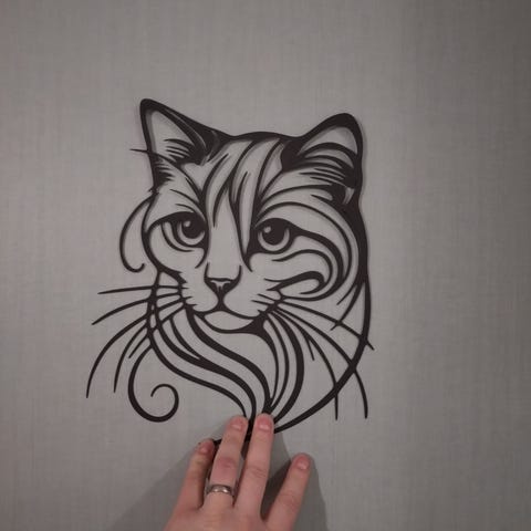 Originell hushållspappershållare i trä - handmålad katt i grått