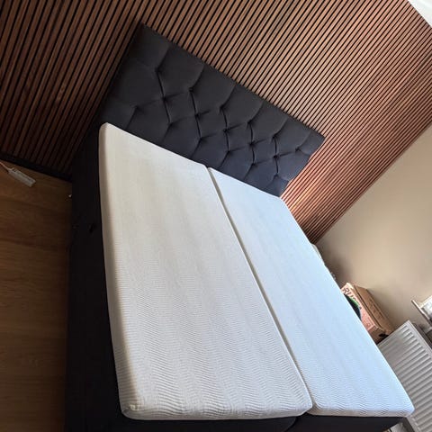 90 x 200 cm. Köpt ny 2019. Nypris 38 999 kr. Huvudgaranti: 15 år på madrassen mot sättningar från tillverknings- eller materialfel.