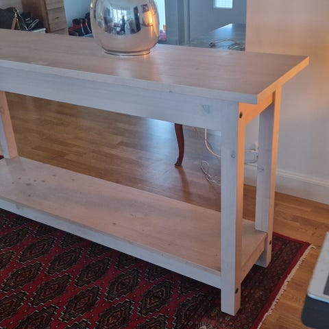 Svart lackat bord med tre djupa genomgäende lädor. Längd 85, bredd 40, höjd 74 cm.
