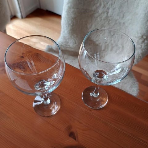 5 stycken äldre vinglas med grön fot säljes. Är i fint skick och inga nagg. Glasen är 17,5 cm höga och rymmer 200 ml / 2 dl. Hämtas i Staffanstorp och skickas inte. Hund finns i hemmet.