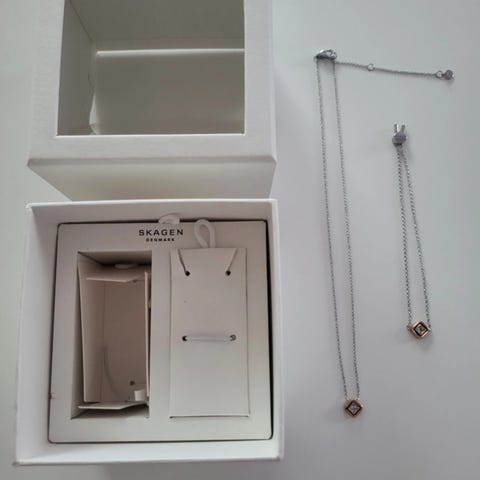 Halsband från Fossil och Ioaku samt armband från Skagen säljes för 50 kr styck. Längden på halsbanden syns på sista bilden. Alla smycken är använda men i väldigt fint skick.