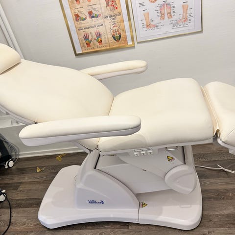 Energimassagestol. Själva stolen är i gott skick. Skinnimitationen flagar av från kuddarna