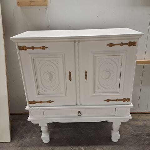 1700-tals skåp med vackra detaljer säljes. Åldersrelaterat slitage.