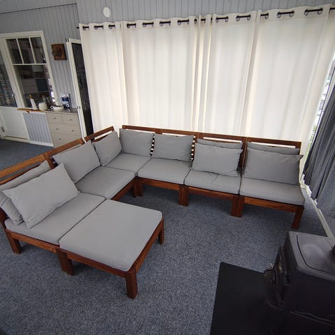 Två fina uppblåsara soffor. Rymmer 2 personer per soffa. Blir som en stor mjuk soffa. Kan tas med överallt.