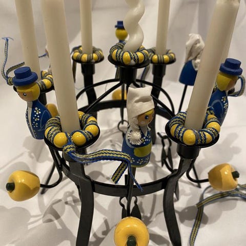 Klassisk smidesljusstake. Plats för 7 ljus. H 16 cm, diameter 18 cm.