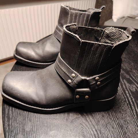 En ägare, handgjorda i äkta läder och riktig sula, stadig modell med fin patina, se bilder.