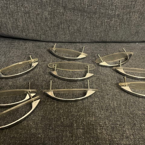 Handtag i gedigen metall, vikt 1,7 hg /st.