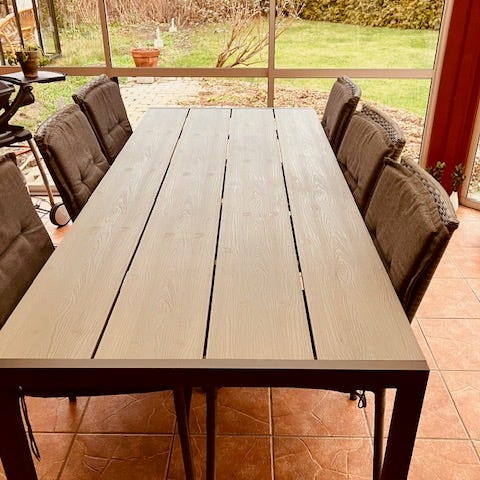 Nimes är ett elegant matbord i vitt pulverlackad aluminium från Brafab. Nimes har en elegant ribbad toppskiva med nätta och snygga konade ben. Bordet är helt underhållsfritt.