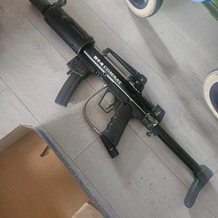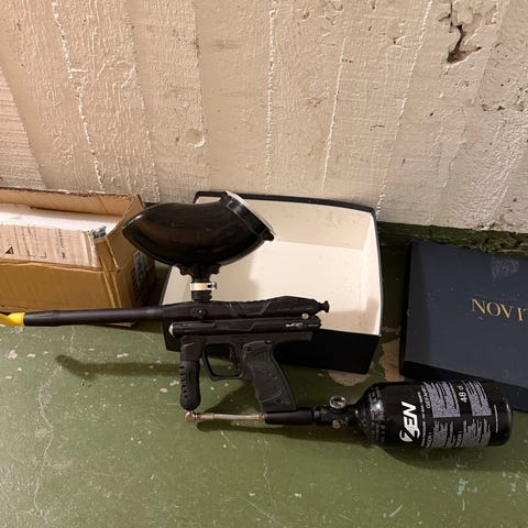 Säljer mina 4st paintballmarkörer tillsammans med 5st masker. Ca 1500 skott tillhör. Kul för barn och vuxna på t.e.x. tomten. Alla laddas med flera skott och har pumpmekanism. Skotten flyger 20-25 meter. Dessa finns i Mariefred.
