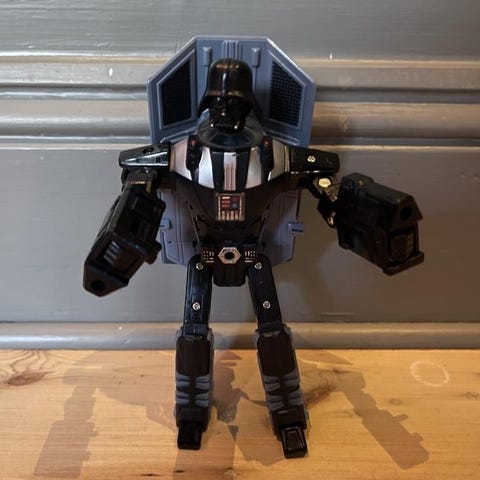 Darth Vader-huvud för godis och fungerande Star Wars walkietalkies (batterier följer inte med, behövs 2 st 9 v) bortslumpas billigt.