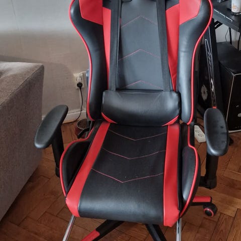 Gaminsgstol med högtalare, anslut med sladd eller bluetooth.