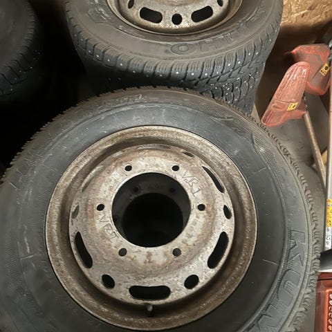 Bra begagnade med slitna sommardäck, passar exempelvis till husbil, (2 st 3mm, 2st 4 mm), en fälg har en liten skada som man kan fila till om man vill