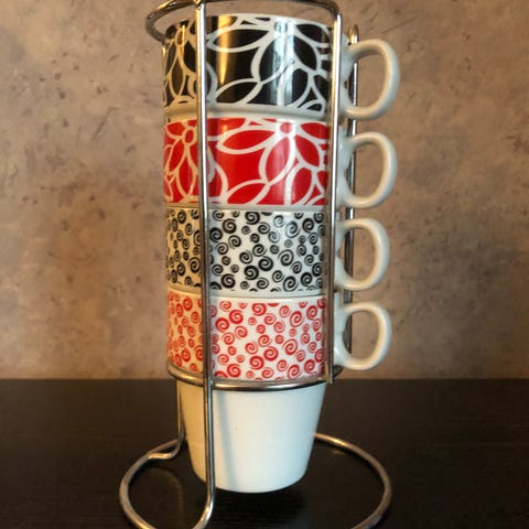 En av alla dessa ”bröllopspresenter” som jag säljer dels eftersom jag inte behöver dom och dels eftersom jag inte får plats hemma. De fyra vita vackra tekopparna i porslin från Spode designade av Sophie Conran är nya och oanvända och är fortfarande kvar väl förpackade i kartongen från Spode som jag fick dem i. Såg att de såldes på Cervera tidigare ( men inte längre ) för 509 kr styck dvs 2036 för dessa fyra.