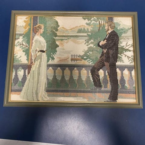 Handbroderad tavla. Skagern. Inglasad.