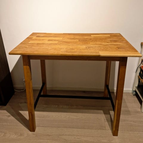 Säljer mitt Ikea Ekedalen barbord med tillhörande stolar. Stolarna är nyligen omklädda i ett snyggt beige/brunt tyg – ser fräscha och moderna ut!