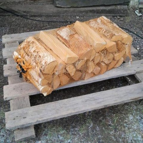 Ca 30-35 cm blandad svall ved ligger i säck på pall som ni ser på bilden ungefär 1 kubik per pall