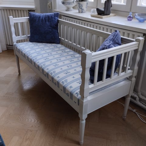 Jättefin soffa som behöver lite kärlek. Den är hel och fin men ryggen är inte fixad och det är några småskavanker i färgen etc.