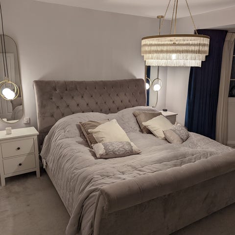 Daiva sänggavel står direkt på golvet och placeras enkelt mellan säng och vägg.