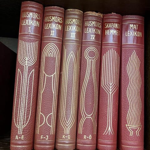 Svenskt husmorslexikon från 1952 5:e upplagan Uppslagsverket börjar på Aborre och sista slutar på överkast.+ Koklexikon