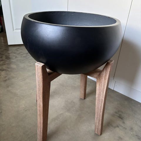 Smart kruka med effektiv dränering på 4 st ben. Passar lika bra i fönstret som på golvet eller uteplatsen. Mått: höjd 19,5 cm och diameter som bredast 23 cm och i botten 17,5 cm. Kan hämtas på Fridhemsgatan vid Fridhemsplan.