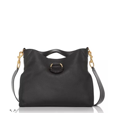 Säljer en helt oanvänd See by Chloés klassiska mini Hana axelremsväska i vacker mix av mocka och läder. Stor feminin guldfärgad ring med embossad logga i mitten och signatur detaljer. Väskan försluts med magnet och har justerbar axelrem. B. 18 cm H. 14 cm D. 5cm Tillhörande dust bag ingår.