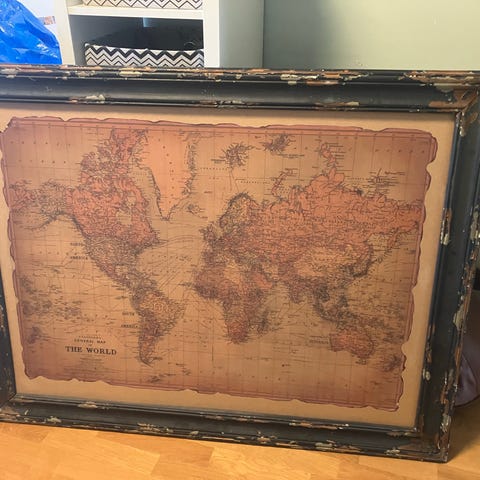 Säljer en vacker inramad pusseltavla med motiv av en antik världskarta.