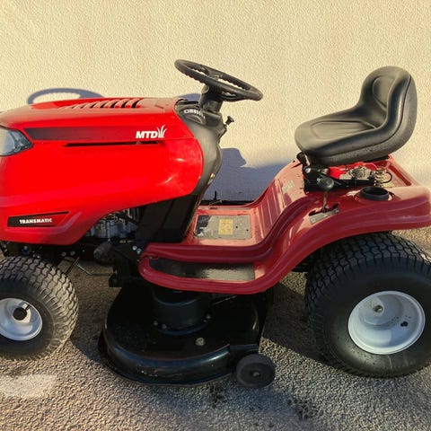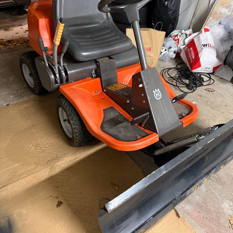 Gräsklippare Partner P12597 nyservad och genomgången med trädgårdsvagn / tippbar. Allt i bra bruksskick bara att starta och börja köra. Vagnen ingår.