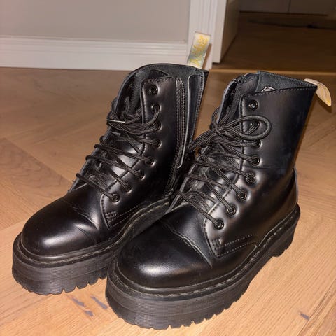 Dr martens Jadon III i storlek 39. Nästan inga tecken på användning då de är knappt använda. Köpte dem för 2400kr.